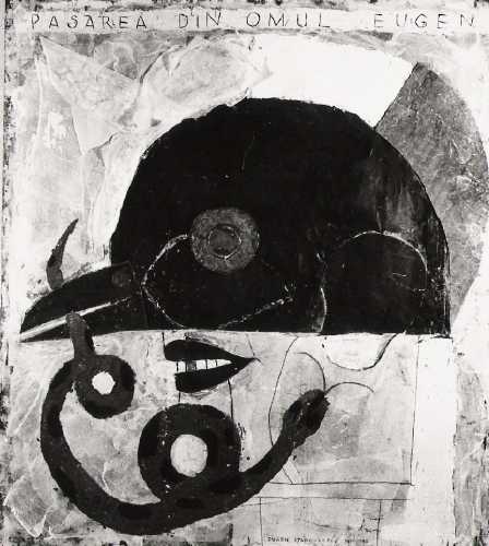 Eugen Stănculescu in front of his work TIME (contemporary triptych), 1968